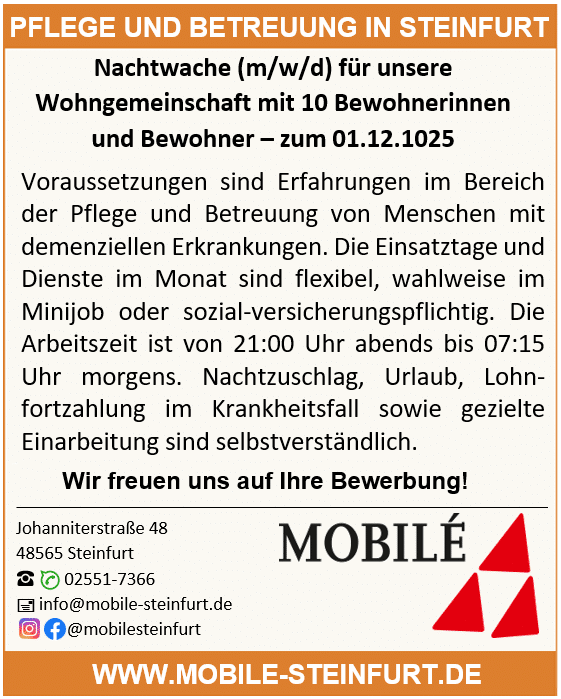 Weitere Infos gerne unter (Telefon oder WhatsApp) 02551–7366 oder via E‑Mail unter
